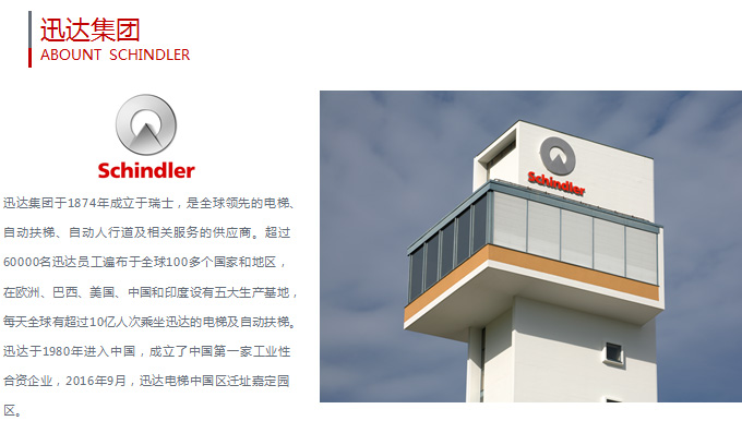 沃克斯迅達電梯有限公司是首批國家A級電梯制造和A級安裝改造維修企業(yè)。其前身湖州迅達電梯有限公司在中國境內擁有40年生產(chǎn)銷(xiāo)售及安裝各類(lèi)電梯及扶梯的寶貴經(jīng)驗。沃克斯迅達電梯有限公司總投資3.5億人民幣,注冊資本2.58億人民幣,總占地面積150000平方米,高度108米的試驗塔內建有7.0m/s超高速等電梯,公司的產(chǎn)品質(zhì)量及技術(shù)研發(fā)能力已處于行業(yè)領(lǐng)先水平。 2016年,沃克斯迅達電梯有限公司與世界電梯業(yè)巨頭——瑞士迅達集團正式合資,雙方開(kāi)始全面合作,公司發(fā)展步入嶄新階段。